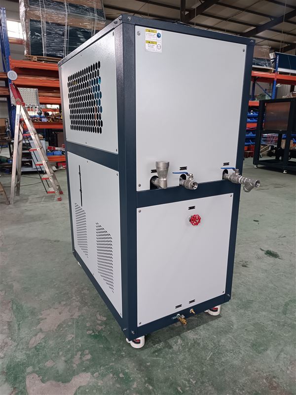 造粒机械在制粒过程中,由于摩擦、压力等因素,会产生大量的热量,这些热量如果不及时散去,会导致设备温度升高,影响设备正常运行,甚至造成设备损坏。因此,造粒机械在运行过程中,通常需要使用冷水机进行冷却降温。 冷水机的作用是通过循环水系统将热量从设备中带走,并通过冷凝器将热量散发到外界环境中,从而保持设备的正常运行温度。在造粒机械中,冷水机通常与设备连接