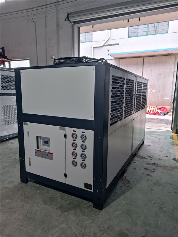40HP风冷式冷水机是一种制冷设备,主要用于冷却或制冷各种工业或商业应用中的设备或流程。这种冷水机的主要特点包括: