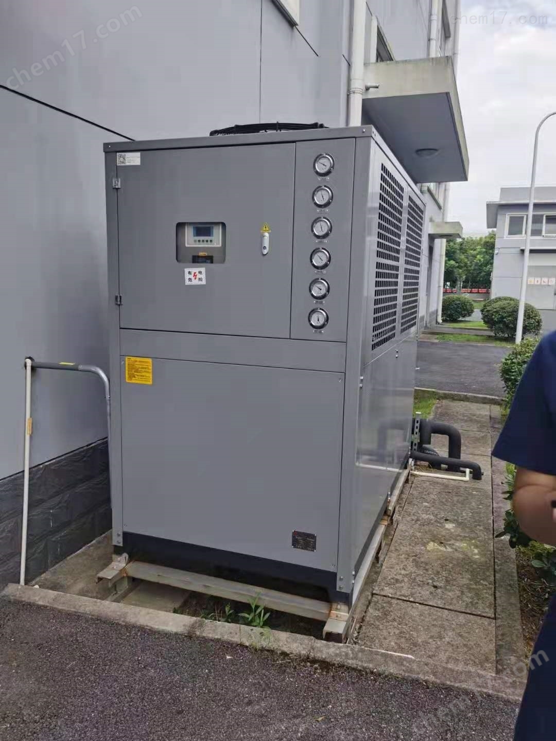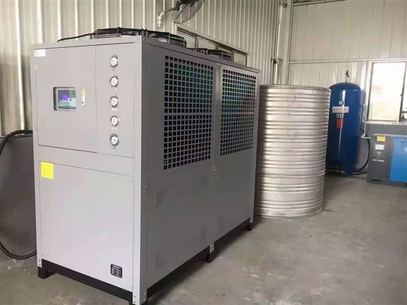 工业制冷机,冷水机组由压缩机、冷凝器、蒸发器、膨胀阀制冷系统四大部件及其他辅件组成。系统的运作能够提供恒温、恒流、恒压的冷冻水。冷水机在运行过程中先将一定量的水注入机器的内部水箱,通过冷水机制冷系统将水冷却,再由水泵将低温冷冻的水注入需要冷却的设备内,冷冻水将机器内部的热量带走,将高温的热水再次回流到水箱进行降温,如此循环交换冷却,达到为设备制冷冷却的目的。
