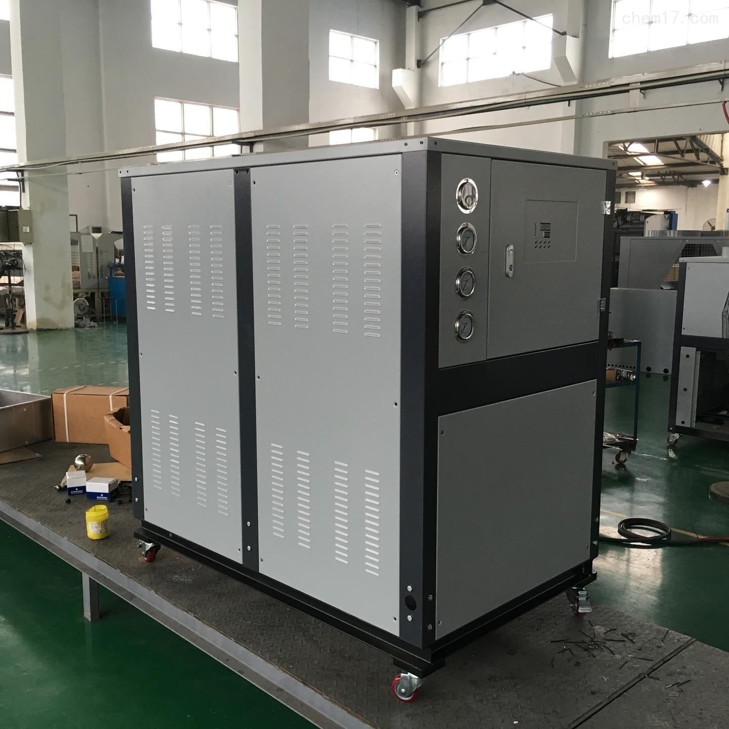 注塑,压延炼密 橡胶冷却设备 工业冷水机组工业冷水机根据负荷变化自运调节机组启停,更加节能,运行时,电脑控制系统会依据客户端热负荷变化来改变机组的能量输出.微电脑通过监控测量的实际负荷与用户的设定之差异迅速判断到所需的能量.并且在多台系统中.以最佳冷量输出时最少电能消耗的优化方式工作.不但全负荷时体现出优异的性能. 即使在部分负荷时也有很高的运行效率
